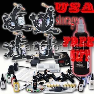 6 of the latest tattoo guns (perfect 10 wrap coils)2 rare empaistic grips with tube 2 stainless steel grips with tube 8 stainless steel tips in different sizes; (4 for round , 4 for flat needles)1 professional power supply system with foot switch 50 high quality sterile tattoo needles-round liner 3, 5, 8, and 9; round shader 5, 7, and 9; magnum 5, 7, and 9 (5 for each size)18 disposable tips, match with the needles7 bottles of tattoo ink (black, white, red, yellow, blue, green, brown)1 ink holder with 10 rubber rings, 50 grommets, and 50 rubber bandsset of adjustment tools and other attachments1 top quality carrying case with lock and keystutorial video for tattoo beginners practice skin is included.